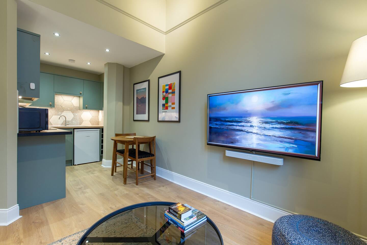 Stay in the heart of Glasgow, just steps from the river, parks, shops, restaurants and both main train stations. Our apartment combines historic character with modern comforts: soaring ceilings, big windows and a calm, quiet atmosphere. Guests love the luxury shower, super-comfy king bed, spotless presentation and thoughtful extras like coffee, teas, condiments and toiletries. With a fully equipped kitchen, washer/dryer, Sonos sound and huge TV, it’s a stylish, convenient base for any stay.